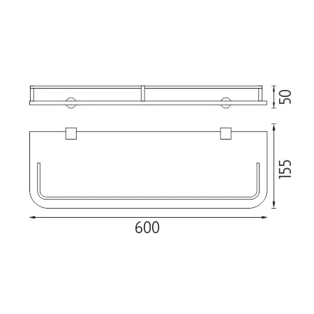 Police s matovaným sklem se zaoblenými rohy, s ohrádkou. Délka 60 cm.