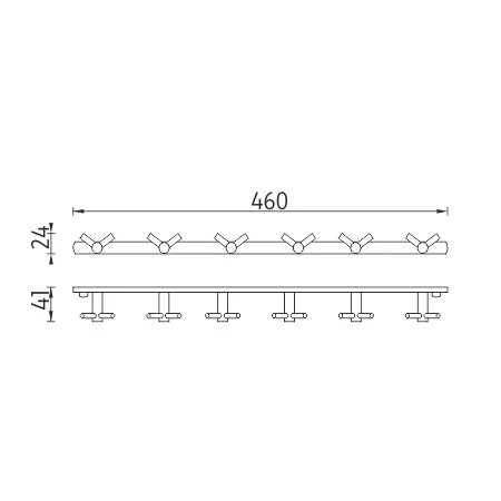 Šestiháček s dvojitými háčky s chromovanými krytkami vrutů.