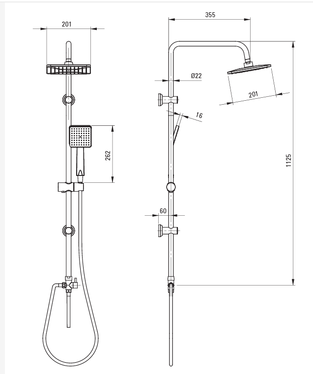 Hlavová sprcha z ABS plastu se čtvercovým designem (201 × 201 mm) zajišťuje příjemný dešťový proud, který simuluje jemný letní déšť a přináší relaxaci po náročném dni. Díky systému Anti-Calc je údržba sprchy snadná – trysky jsou odolné vůči usazování vodního kamene.