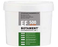 BOTAMENT® EF 500EK 500 je spárovací hmota a lepicí tmel na bázi epoxidové pryskyřice, s vysokou odolností proti působení chemikálií. Pro použití na stěnách i podlahách ve vnitřním i vnějším prostředí.