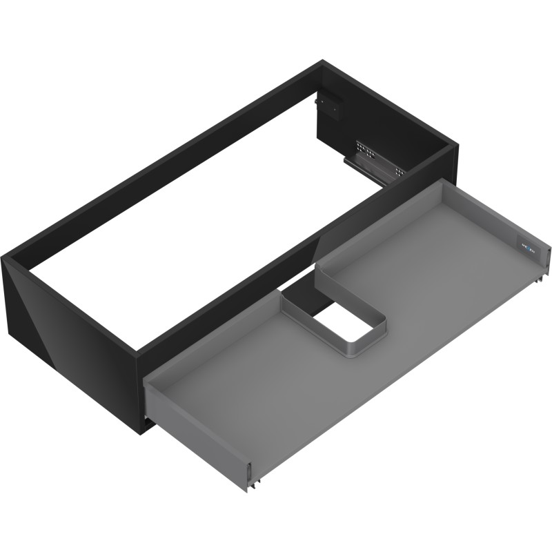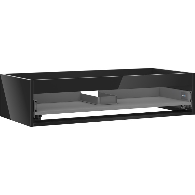 Specifikace produktu: Šířka: 100 cm Hloubka: 44,2 cm Výška: 23,5 cm Barva: Lesklá černá Typ: Závěsné Materiál: Lakovaná deska Počet zásuvek: 1 Vodítka s funkcí tlumeného dovírání Plný výsuv pro snadný přístup k obsahu zásuvky Povrch odolný vůči UV záření Kombinovatelný s dvířky ze série Orio, Rivel Produkt smontovaný