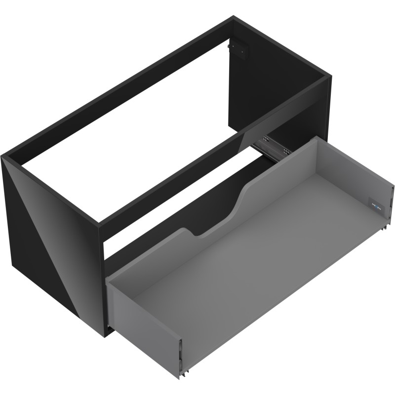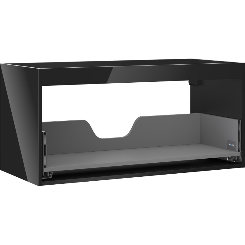 Specifikace produktu: Šířka: 100 cm Hloubka: 44,2 cm Výška: 47 cm Barva: Lesklá černá Typ: Závěsné Materiál: Lakovaná deska Počet zásuvek: 1 Vodítka s funkcí tlumeného dovírání Plný výsuv pro snadný přístup k obsahu zásuvky Povrch odolný vůči UV záření Kombinovatelný s dvířky ze série Orio, Rivel Produkt smontovaný