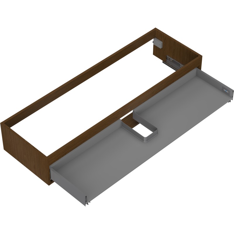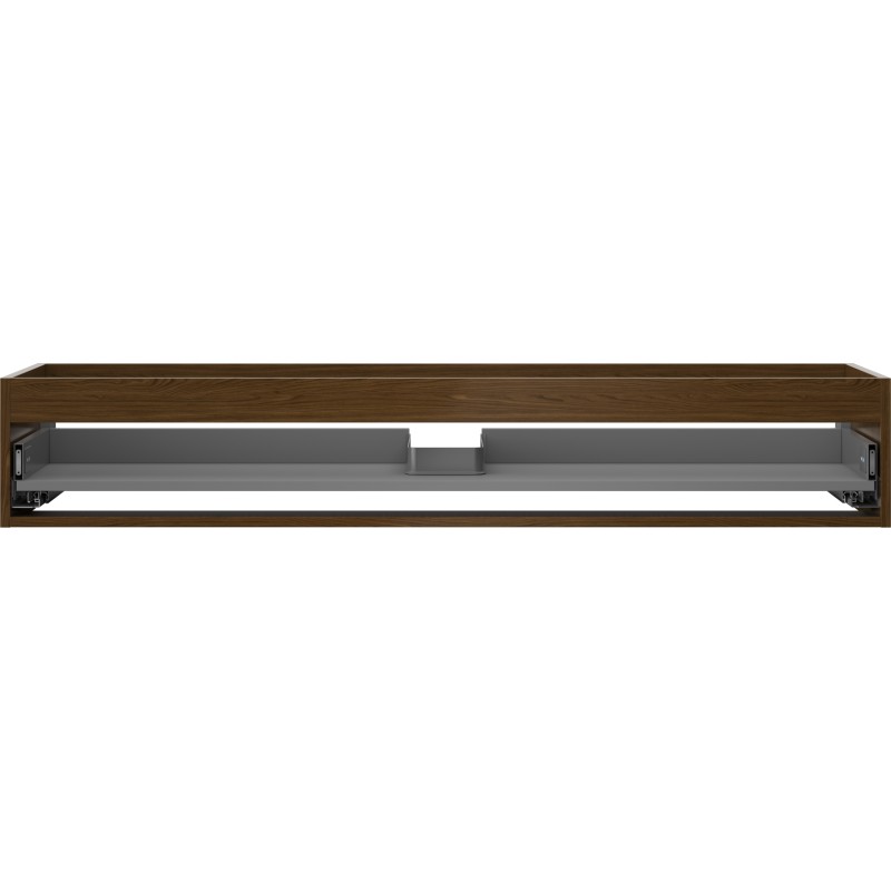 Specifikace produktu: Šířka: 140 cm Hloubka: 44,2 cm Výška: 23,5 cm Barva: Ořech Typ: Závěsné Materiál: Karton + PVC fólie Počet zásuvek: 1 Vodítka s funkcí tlumeného dovírání Plný výsuv pro snadný přístup k obsahu zásuvky Povrch odolný vůči UV záření Kombinovatelný s dvířky ze série Orio, Rivel Produkt smontovaný