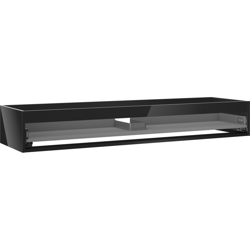 Specifikace produktu: Šířka: 160 cm Hloubka: 44,2 cm Výška: 23,5 cm Barva: Lesklá černá Typ: Závěsné Materiál: Lakovaná deska Počet zásuvek: 1 Vodítka s funkcí tlumeného dovírání Plný výsuv pro snadný přístup k obsahu zásuvky Povrch odolný vůči UV záření Kombinovatelný s dvířky ze série Orio, Rivel Produkt smontovaný