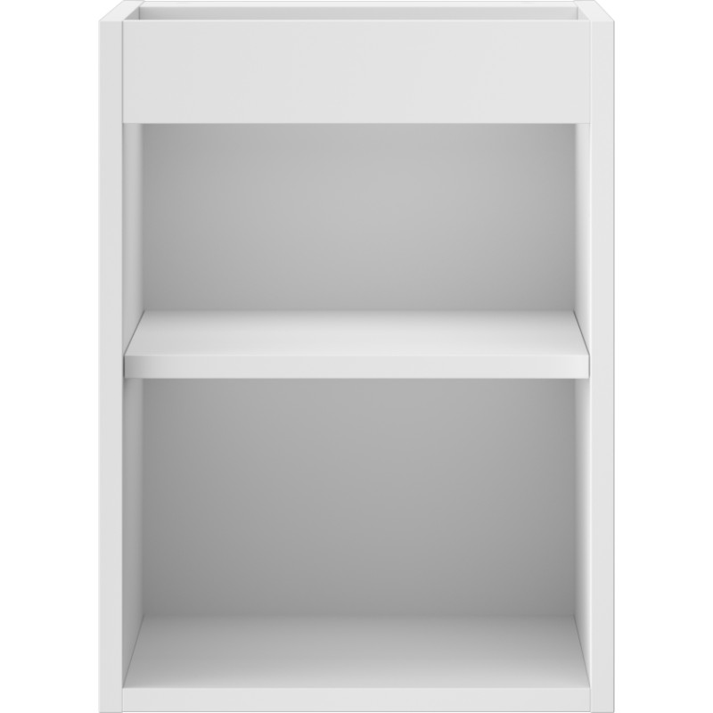 Specifikace produktu: Šířka: 35 cm Hloubka: 44,2 cm Výška: 47 cm Barva: Matná bílá Typ: Závěsný Materiál: Lakovaná deska 1 police Panty s funkcí tlumeného dovírání Univerzální montáž dvířek (levé/pravé) Povrch odolný vůči UV záření Kombinovatelné s dvířky ze série Orio, Rivel Produkt smontovaný