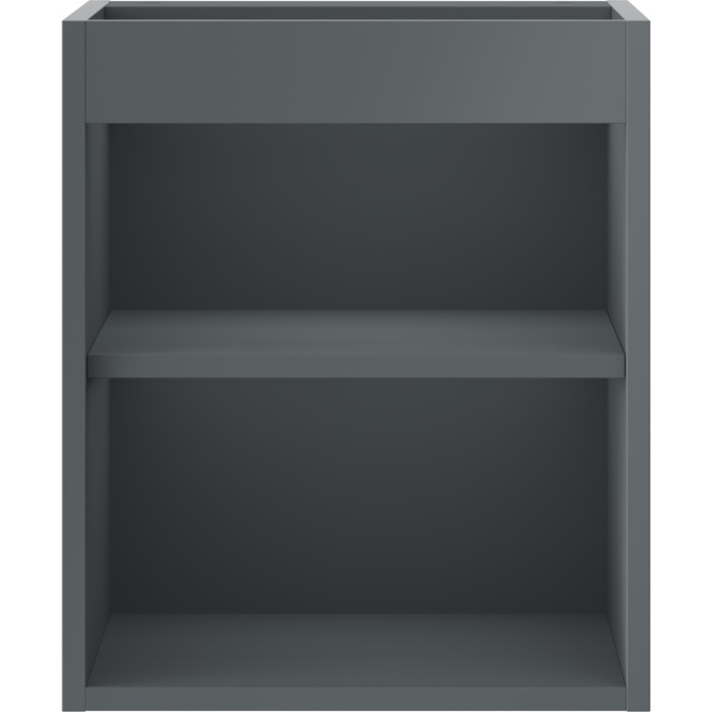 Specifikace produktu: Šířka: 40 cm Hloubka: 44,2 cm Výška: 47 cm Barva: Matný grafit Typ: Závěsný Materiál: Lakovaná deska 1 police Panty s funkcí tlumeného dovírání Univerzální montáž dvířek (levé/pravé) Povrch odolný vůči UV záření Kombinovatelné s dvířky ze série Orio, Rivel Produkt smontovaný