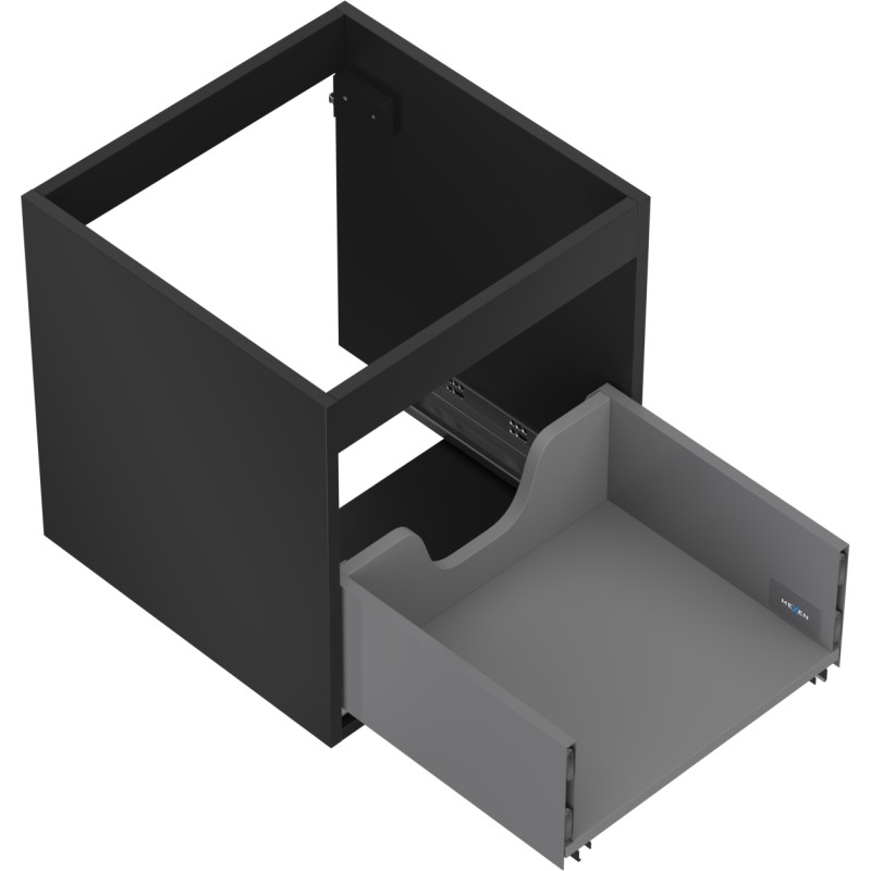 Specifikace produktu: Šířka: 45 cm Hloubka: 44,2 cm Výška: 47 cm Barva: Matná černá Typ: Závěsné Materiál: Lakovaná deska Počet zásuvek: 1 Vodítka s funkcí tlumeného dovírání Plný výsuv pro snadný přístup k obsahu zásuvky Povrch odolný vůči UV záření Kombinovatelný s dvířky ze série Orio, Rivel Produkt smontovaný