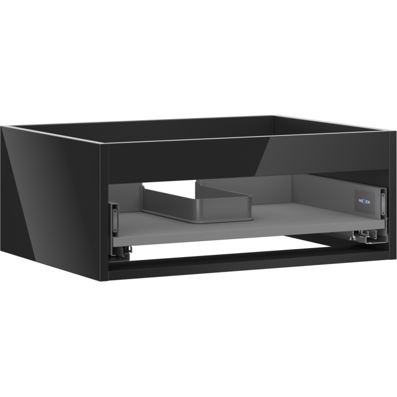 Specifikace produktu: Šířka: 60 cm Hloubka: 44,2 cm Výška: 23,5 cm Barva: Lesklá černá Typ: Závěsné Materiál: Lakovaná deska Počet zásuvek: 1 Vodítka s funkcí tlumeného dovírání Plný výsuv pro snadný přístup k obsahu zásuvky Povrch odolný vůči UV záření Kombinovatelný s dvířky ze série Orio, Rivel Produkt smontovaný
