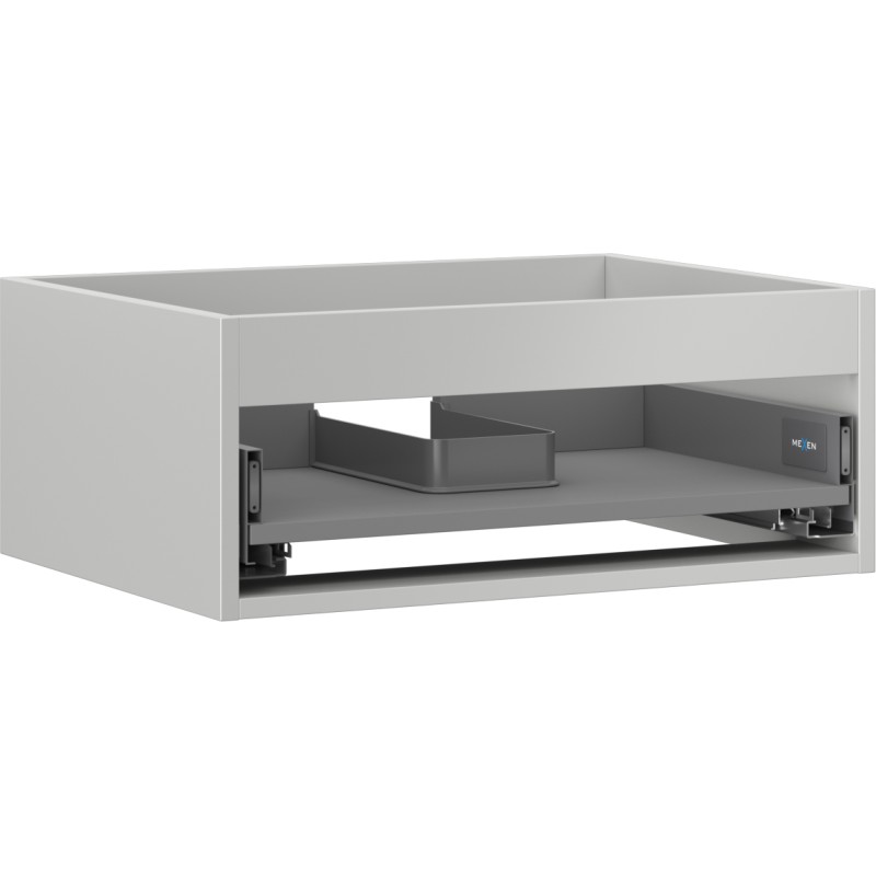 Specifikace produktu: Šířka: 60 cm Hloubka: 44,2 cm Výška: 23,5 cm Barva: Matně šedá Typ: Závěsné Materiál: Lakovaná deska Počet zásuvek: 1 Vodítka s funkcí tlumeného dovírání Plný výsuv pro snadný přístup k obsahu zásuvky Povrch odolný vůči UV záření Kombinovatelný s dvířky ze série Orio, Rivel Produkt smontovaný