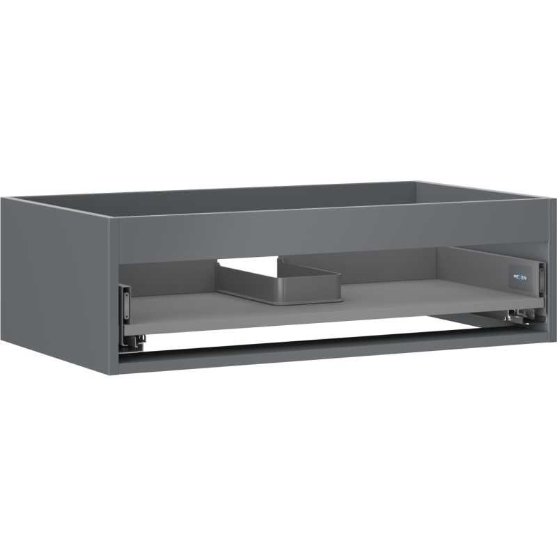 Specifikace produktu: Šířka: 80 cm Hloubka: 44,2 cm Výška: 23,5 cm Barva: Matný grafit Typ: Závěsné Materiál: Lakovaná deska Počet zásuvek: 1 Vodítka s funkcí tlumeného dovírání Plný výsuv pro snadný přístup k obsahu zásuvky Povrch odolný vůči UV záření Kombinovatelný s dvířky ze série Orio, Rivel Produkt smontovaný