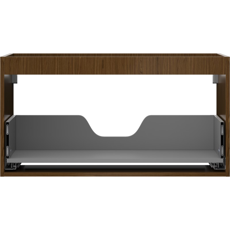 Specifikace produktu: Šířka: 90 cm Hloubka: 44,2 cm Výška: 47 cm Barva: Ořech Typ: Závěsné Materiál: Karton + PVC fólie Počet zásuvek: 1 Vodítka s funkcí tlumeného dovírání Plný výsuv pro snadný přístup k obsahu zásuvky Povrch odolný vůči UV záření Kombinovatelný s dvířky ze série Orio, Rivel Produkt smontovaný