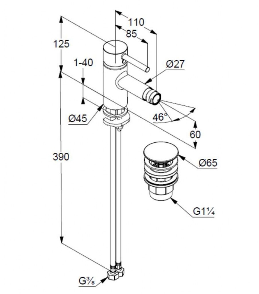 Páková bidetová baterie, s výpustí