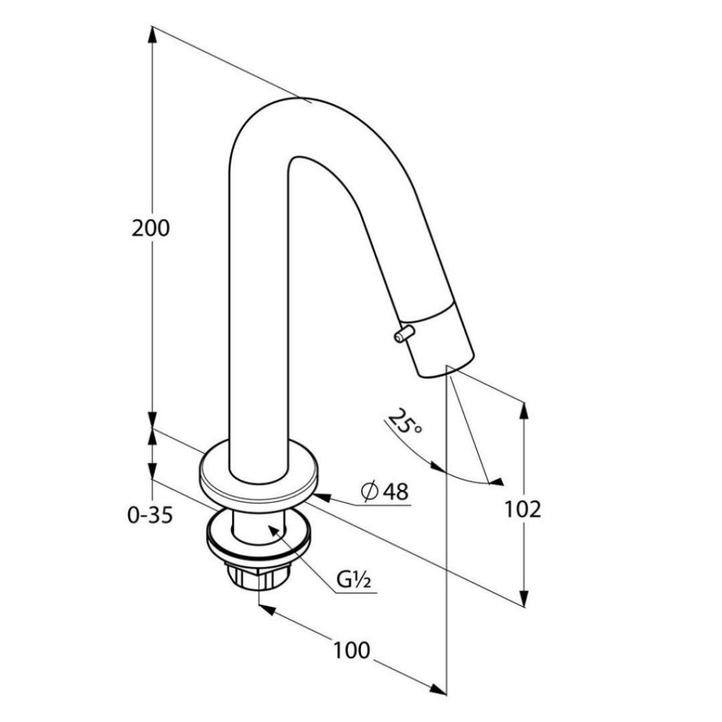 - stojánkový ventil DN 15 s ovládáním na konci výtoku