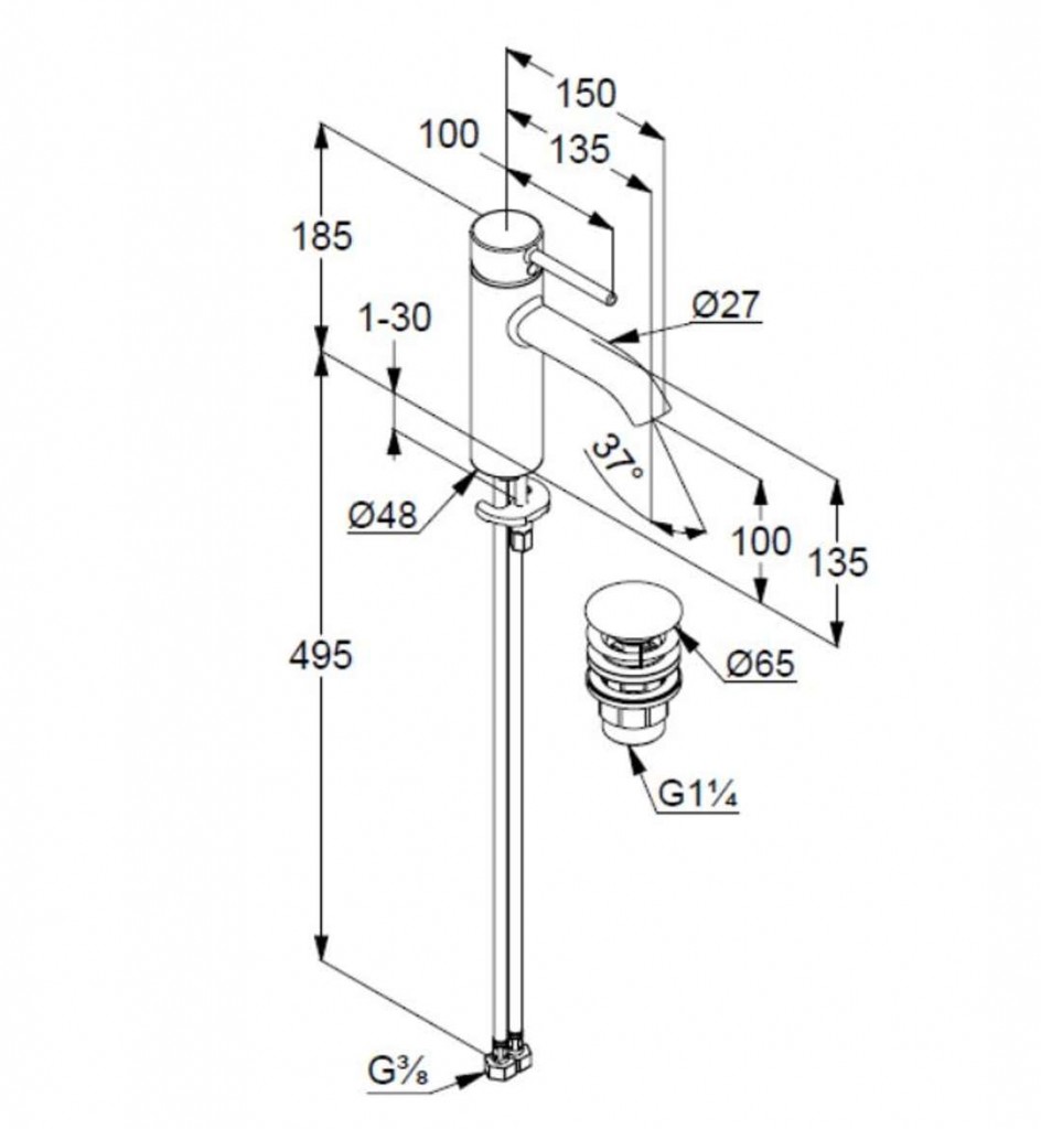 Stojánková umyvadlová baterie s výpustí