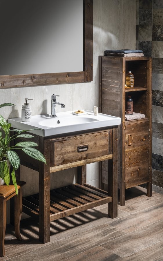 Bývalo pravidlem, že jednoduchý a vzdušný styl koupelny byl zastoupen pouze moderním nábytkem, pro který byly použity materiály typu ocel, sklo a umělý kámen a který striktně dodržoval minimalistický technostyl. Naše série BRAND tento mýtus boří. Díky propracovanému návrhu tvarů a použitých materiálů nabízí jednoduchý a vzdušný tvar. Použití masivního dřeva přímo vybízí k návrhu koupelny ve středomořském duchu. Nabídku umyvadlových skříněk s keramickým umyvadlem šířky 60 a 80 cm a umyvadlových stolků šířek 80, 100, 130 a 160 cm pro umyvadla na postavení doplňuje vysoká doplňková skříňka.