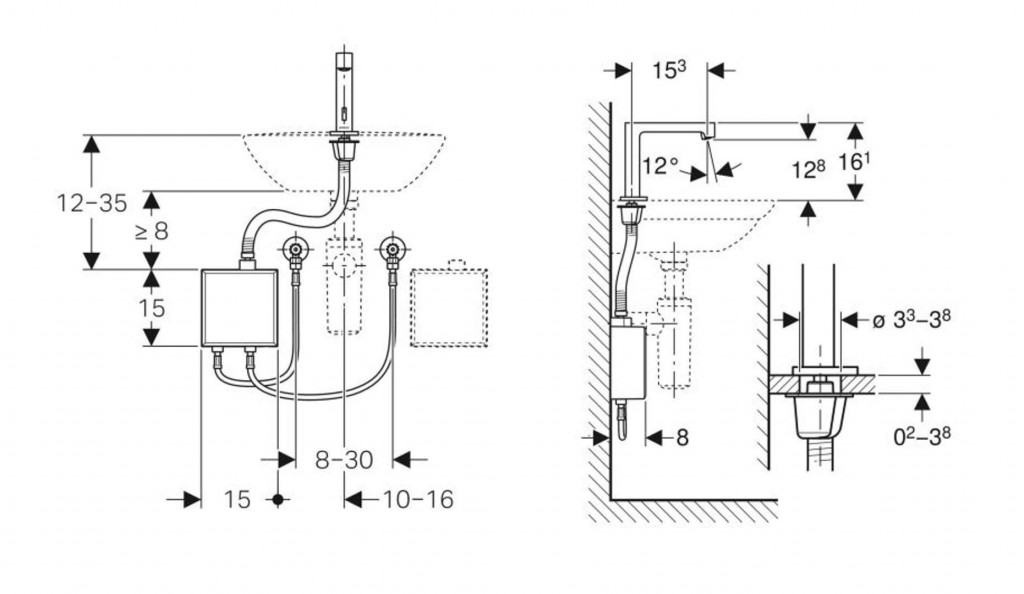 - umyvadlová armatura s infračerveným senzorem a hadicí pro přívod vody