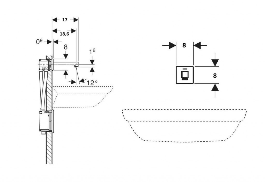 - K montáži do instalačních prvků Geberit pro umyvadlo, nástěnná armatura s funkčním boxem pod omítku