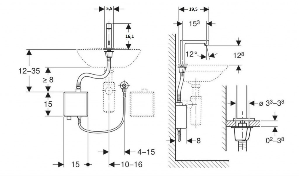 - umyvadlová armatura s infračerveným senzorem a hadicí pro přívod vody