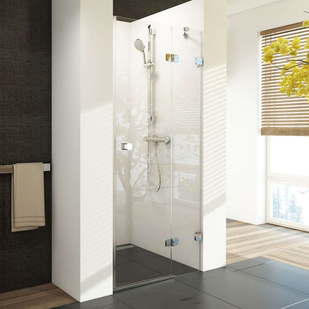 Kompletní sprchové dveře BSD2 jsou dodávány ve složení: skleněné části v prvním balení. Ve druhém balení (B SET, který je třeba objednat zvlášť) jsou kovové části, a pro rozměr 1000 mm také 1 ks krátkého držáku.