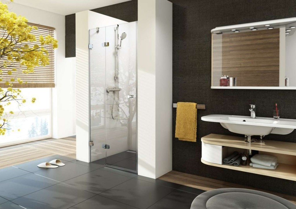 - do obloženého rohu koupelny na vaničky nebo přímo na podlahu se zabudovaným odtokovým žlabem či vpustí