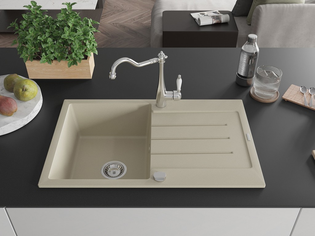 Speciální složení materiálu použitého pro výrobu je žula (80% žula – kámen, 20% pryskyřice) a jeho vysoká hustota garantuje bezpečné používání výrobku, a proto jsou granitové dřezy tak oblíbené. Díky povrchové úpravě nejsou na granitovém dřezu vidět zaschlé kapky, je odolný vůči skvrnám a neztrácí barvu. Povrch je odolný vůči nárazu, poškrábání, změně barvy, vysoké teplotě a teplotním šokům. Při jejich údržbě se používají obvyklé čistící prostředky nebo prostředky na nádobí s jemným abrasivem. Výhodou je rozmanitá barevná nabídka.