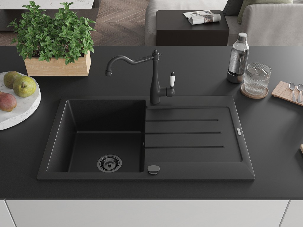 Speciální složení materiálu použitého pro výrobu je žula (80% žula – kámen, 20% pryskyřice) a jeho vysoká hustota garantuje bezpečné používání výrobku, a proto jsou granitové dřezy tak oblíbené. Díky povrchové úpravě nejsou na granitovém dřezu vidět zaschlé kapky, je odolný vůči skvrnám a neztrácí barvu. Povrch je odolný vůči nárazu, poškrábání, změně barvy, vysoké teplotě a teplotním šokům. Při jejich údržbě se používají obvyklé čistící prostředky nebo prostředky na nádobí s jemným abrasivem. Výhodou je rozmanitá barevná nabídka.
