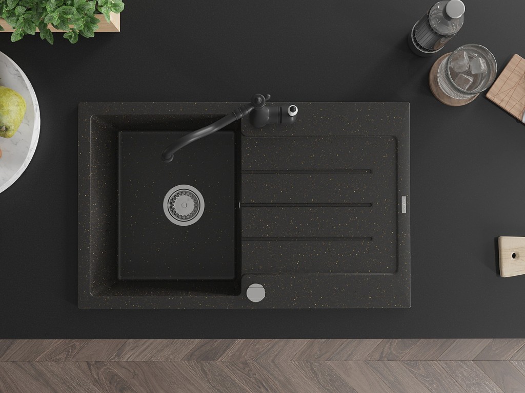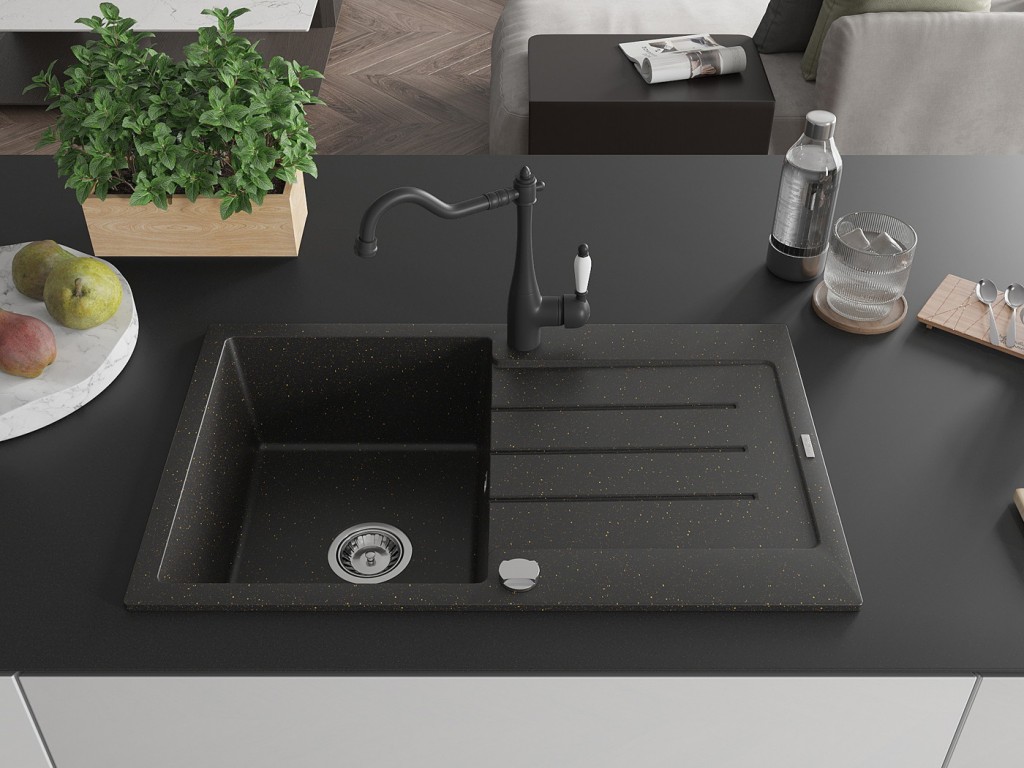 Speciální složení materiálu použitého pro výrobu je žula (80% žula – kámen, 20% pryskyřice) a jeho vysoká hustota garantuje bezpečné používání výrobku, a proto jsou granitové dřezy tak oblíbené. Díky povrchové úpravě nejsou na granitovém dřezu vidět zaschlé kapky, je odolný vůči skvrnám a neztrácí barvu. Povrch je odolný vůči nárazu, poškrábání, změně barvy, vysoké teplotě a teplotním šokům. Při jejich údržbě se používají obvyklé čistící prostředky nebo prostředky na nádobí s jemným abrasivem. Výhodou je rozmanitá barevná nabídka.