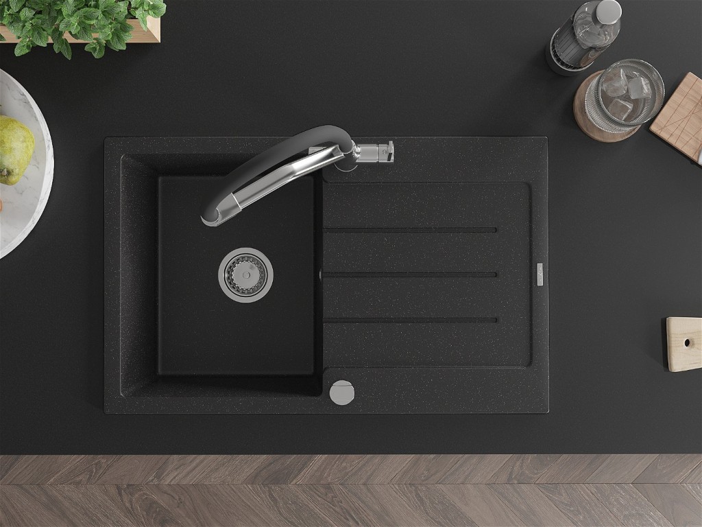 Speciální složení materiálu použitého pro výrobu je žula (80% žula – kámen, 20% pryskyřice) a jeho vysoká hustota garantuje bezpečné používání výrobku, a proto jsou granitové dřezy tak oblíbené. Díky povrchové úpravě nejsou na granitovém dřezu vidět zaschlé kapky, je odolný vůči skvrnám a neztrácí barvu. Povrch je odolný vůči nárazu, poškrábání, změně barvy, vysoké teplotě a teplotním šokům. Při jejich údržbě se používají obvyklé čistící prostředky nebo prostředky na nádobí s jemným abrasivem. Výhodou je rozmanitá barevná nabídka.
