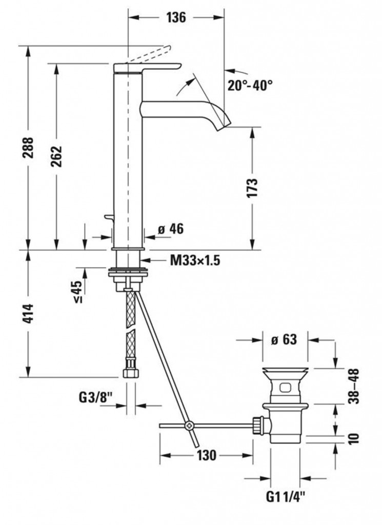 Stojánková umyvadlová baterie L, s odtokovou soupravou