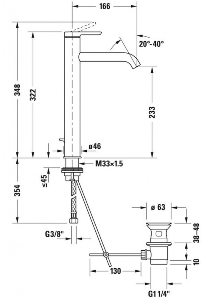 Stojánková umyvadlová baterie XL, s odtokovou soupravou