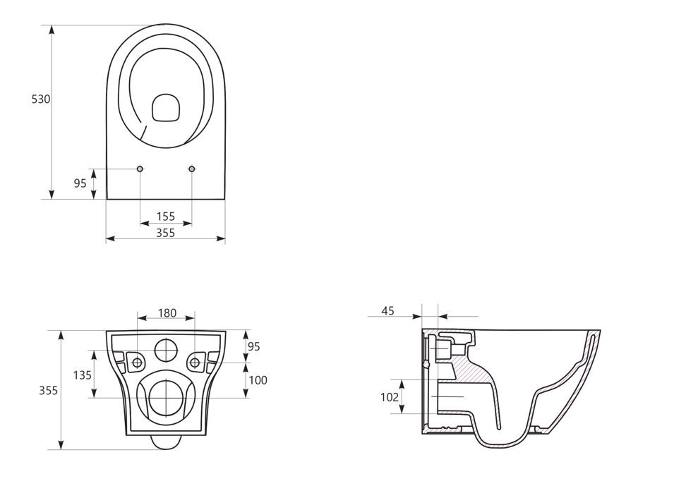 - WC MÍSA (cm): šířka 35,5; hloubka 53; výška 35,5