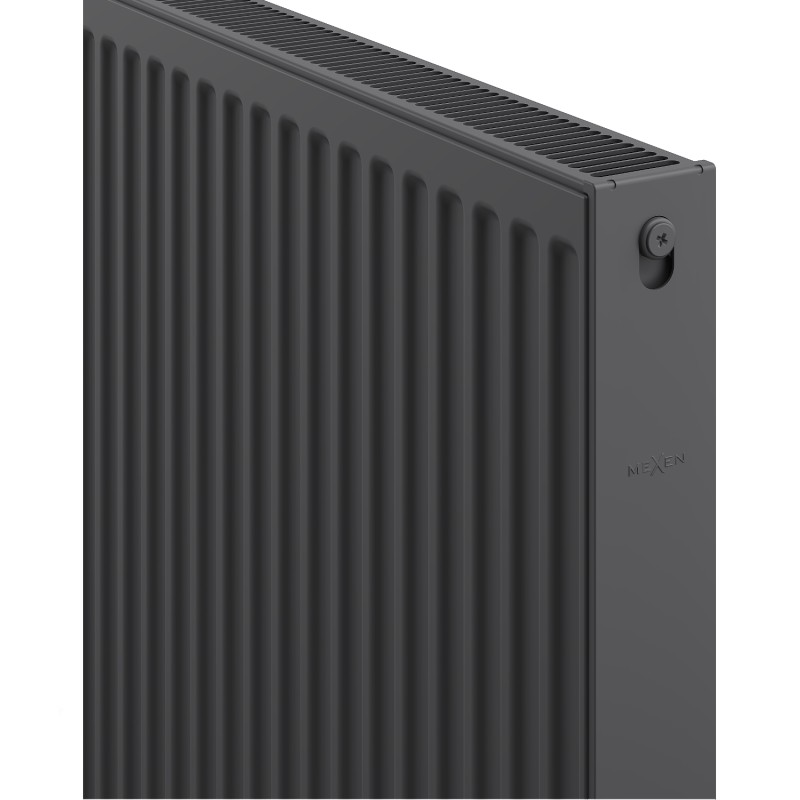 Technické údaje: Výška (Y): 500 mm Šířka (X): 500 mm Hloubka: 73 mm Rozteč připojení: 45 cm Rozteč svislých vodních kanálů: 33,3 mm Barva: Antracitová RAL 7016 Materiál: Ocel Provozní teplota: max. 110 °C Maximální provozní tlak: 10 barů Maximální zkušební tlak: 13 barů Topný výkon: - 55/45/20 °C 287 W - 75/65/20 °C 554 W - 90/70/20 °C 701 W Připojení: - 4xG ½″ strana Vysoce kvalitní, odolný nátěr - DIN 99500 Má boční kryt a odnímatelný horní kryt Sada obsahuje: zavěšení, montážní sadu, záslepky a odvzdušňovací otvor Fotografie zobrazují radiátor ve velikosti 600 x 1200 mm.