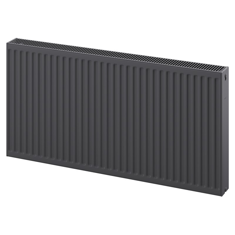 Technické údaje: Výška (Y): 500 mm Šířka (X): 800 mm Hloubka: 103 mm Rozteč připojení: 45 cm Rozteč svislých vodních kanálů: 33,3 mm Barva: Antracitová RAL 7016 Materiál: Ocel Provozní teplota: max. 110 °C Maximální provozní tlak: 10 barů Maximální zkušební tlak: 13 barů Topný výkon: - 55/45/20 °C 590 W - 75/65/20 °C 1140 W - 90/70/20 °C 1442 W Připojení: - 4xG ½″ strana Vysoce kvalitní, odolný nátěr - DIN 99500 Má boční kryt a odnímatelný horní kryt Sada obsahuje: zavěšení, montážní sadu, záslepky a odvzdušňovací otvor Fotografie zobrazují radiátor ve velikosti 600 x 1200 mm.