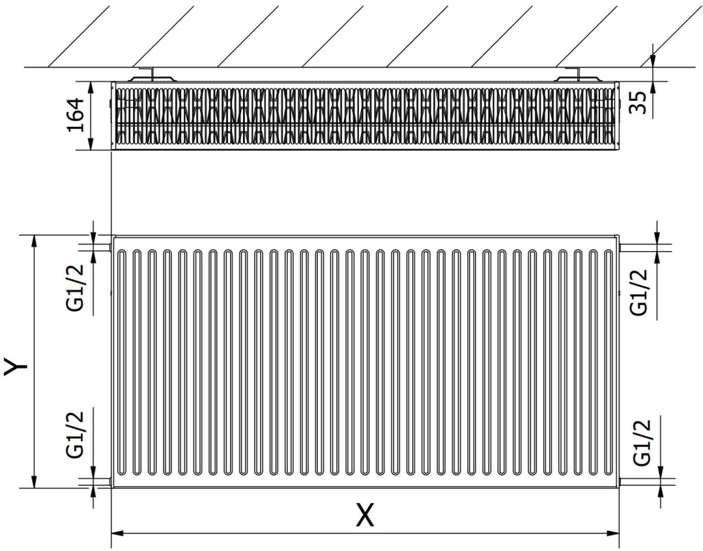 Rozteč svislých vodních kanálů: 33,3 mm