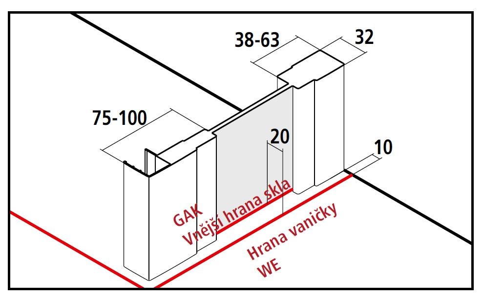 - Částečně rámová boční stěna (nelze instalovat jako Walk-in).