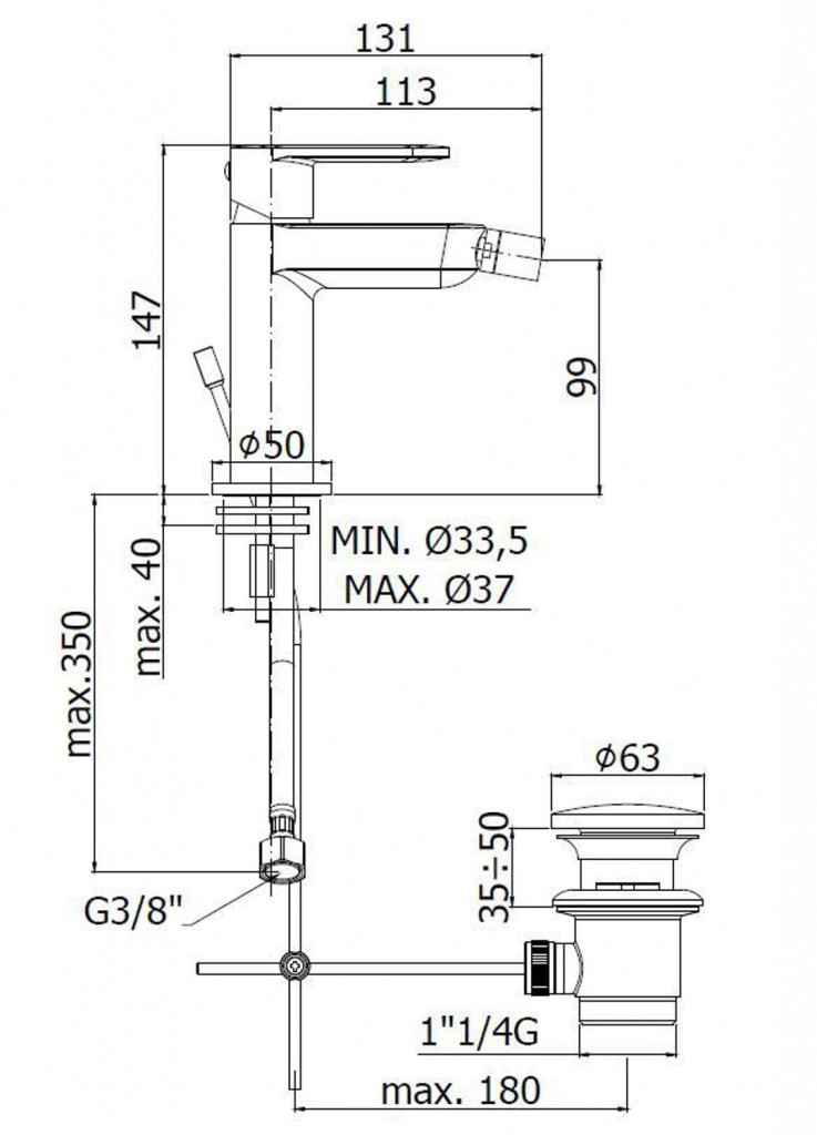 - délka raménka 131 mm, komfortní zóna 99 mm