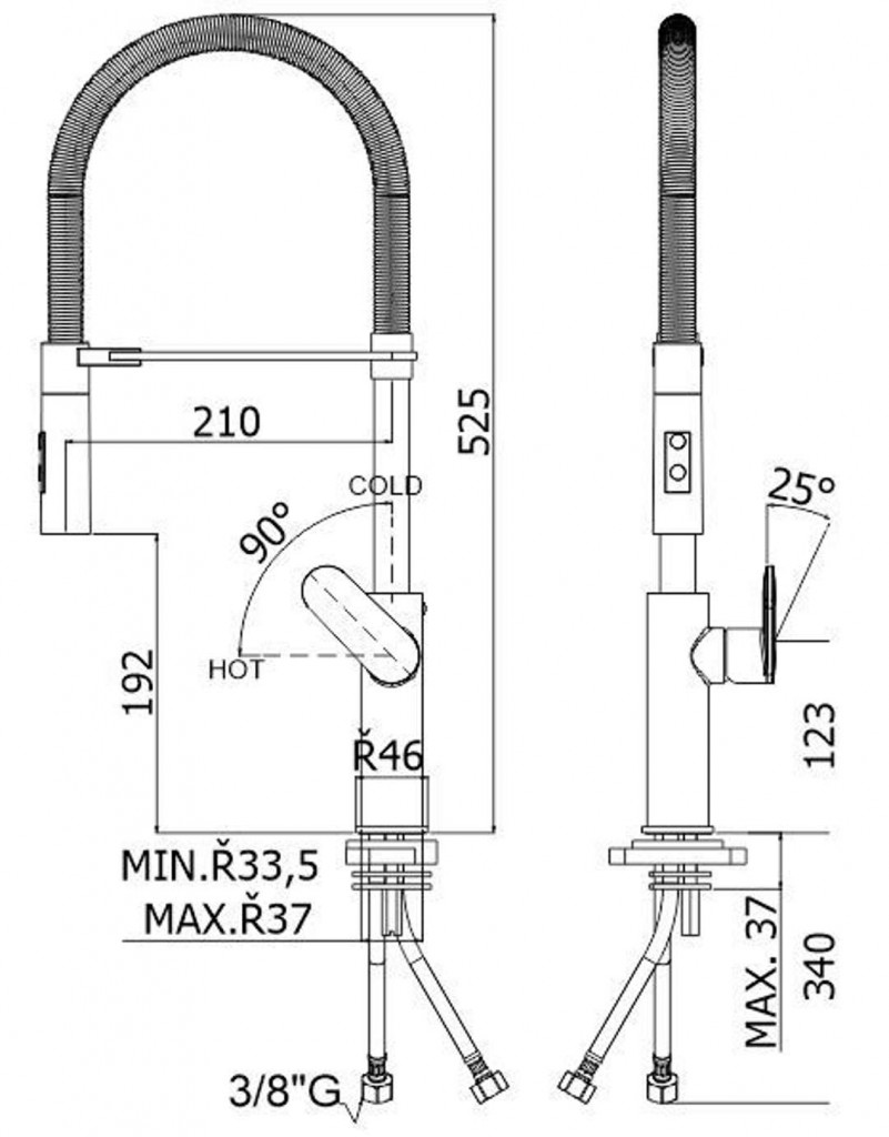 - set 2 nerezových hadiček G 3/8" pro připojení k roháčkům v délce 45 cm