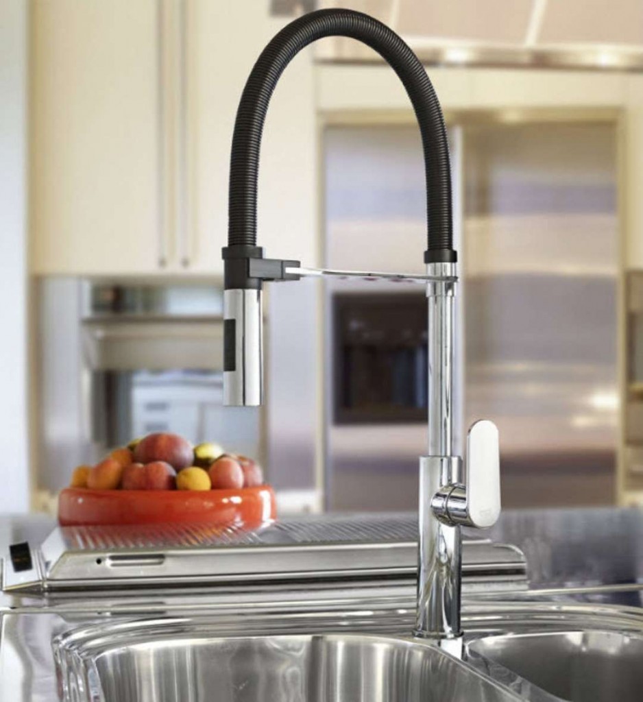 Kuchyňská dřezová stojánková páková baterie s vytahovací sprškou se dvěma proudy