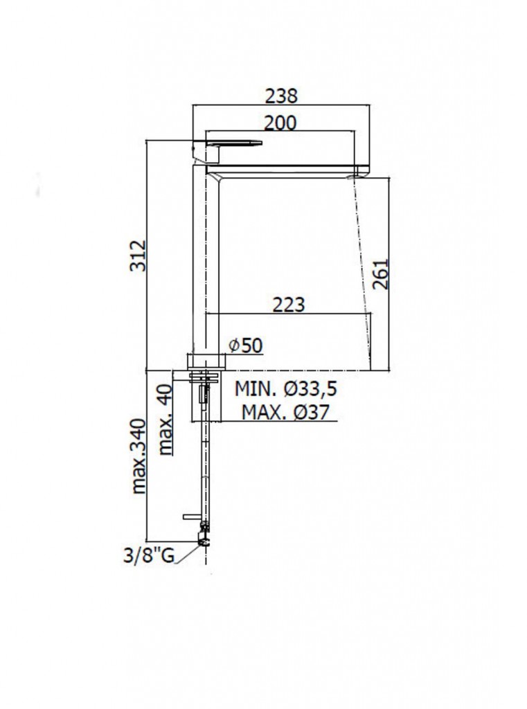 - délka raménka 238 mm, komfortní zóna 261 mm