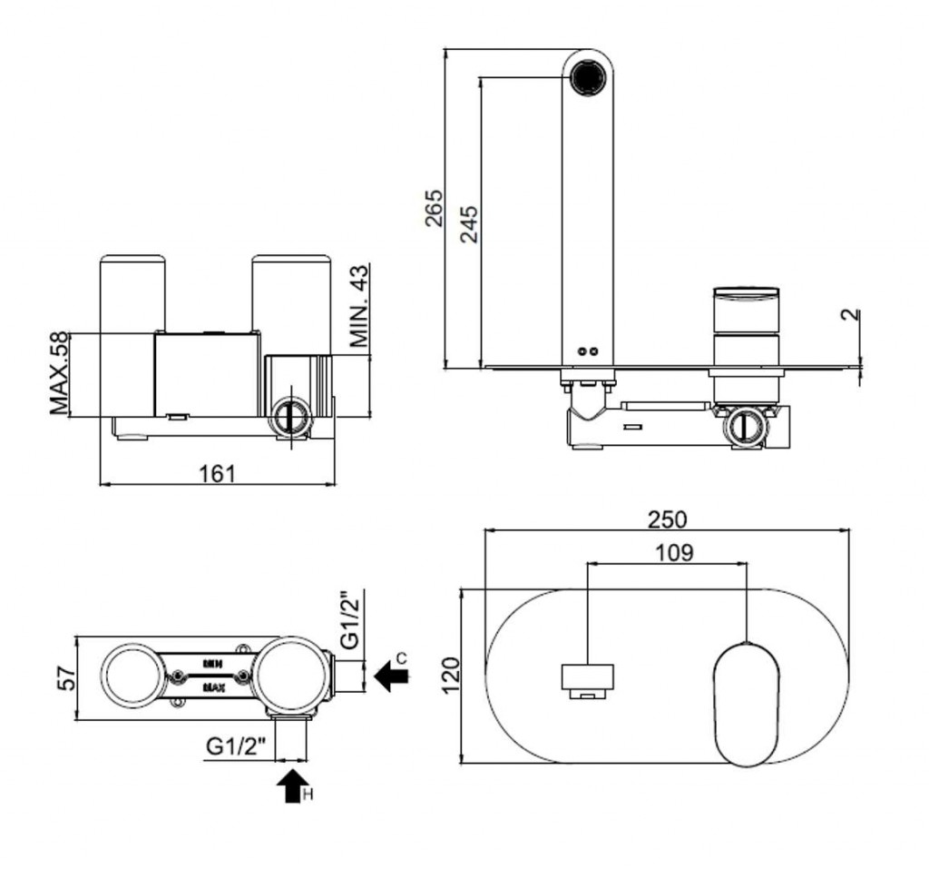 Umyvadlová páková baterie pod omítku s tělesem
