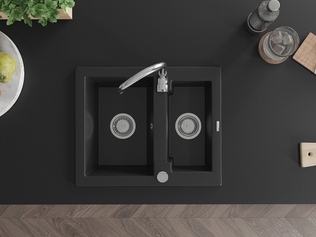 Speciální složení materiálu použitého pro výrobu je žula (80% žula – kámen, 20% pryskyřice) a jeho vysoká hustota garantuje bezpečné používání výrobku, a proto jsou granitové dřezy tak oblíbené. Díky povrchové úpravě nejsou na granitovém dřezu vidět zaschlé kapky, je odolný vůči skvrnám a neztrácí barvu. Povrch je odolný vůči nárazu, poškrábání, změně barvy, vysoké teplotě a teplotním šokům. Při jejich údržbě se používají obvyklé čisticí prostředky nebo prostředky na nádobí s jemným abrasivem. Výhodou je rozmanitá barevná nabídka.