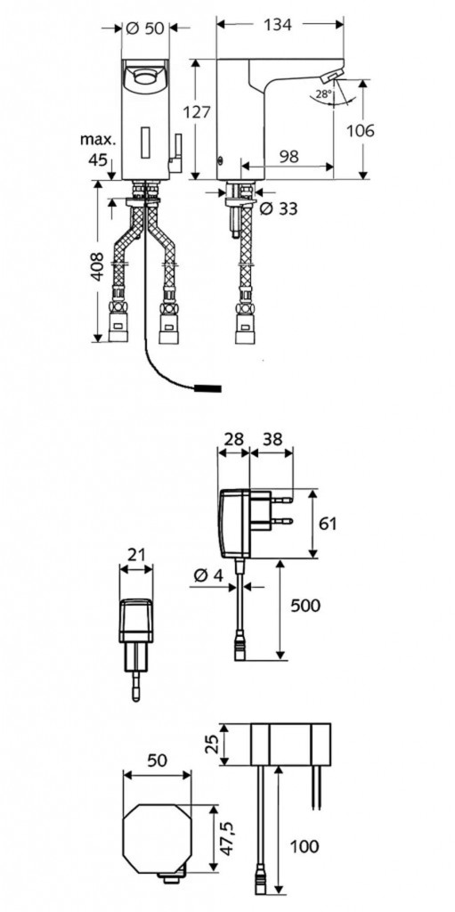 - kabel se zástrčkou 100-240 V, 50-60 Hz