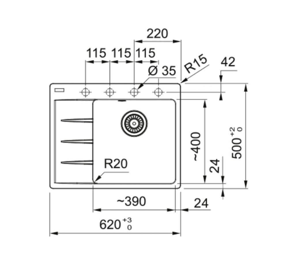 - dřez 200 x 340 x 420 mm (VxŠxH)
