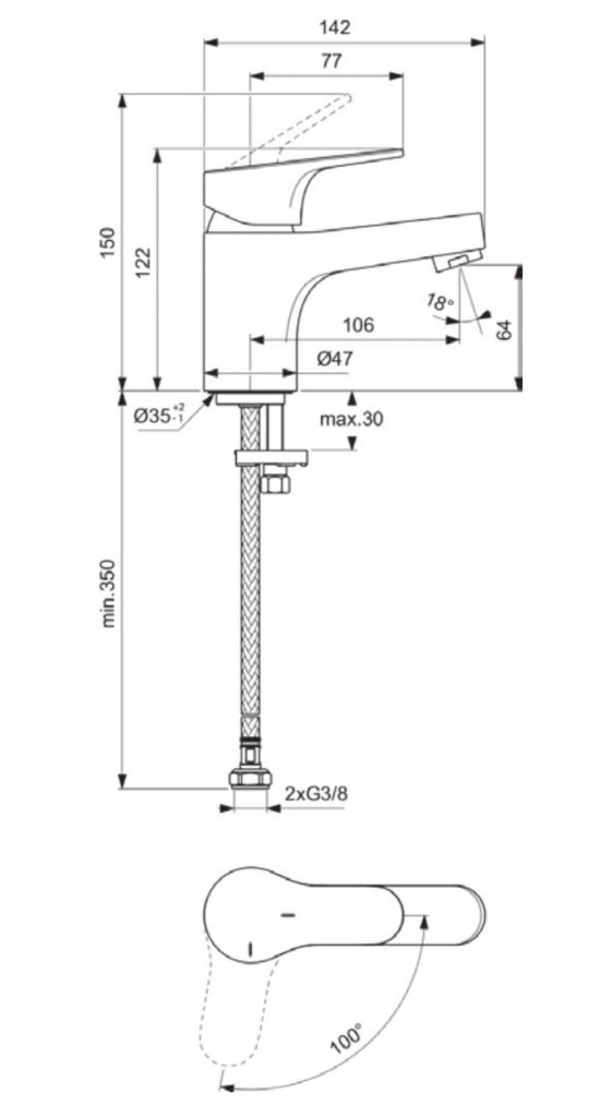 - BlueStart technologie šetří energii a vodu, v pozici páky uprostřed protéká studená voda