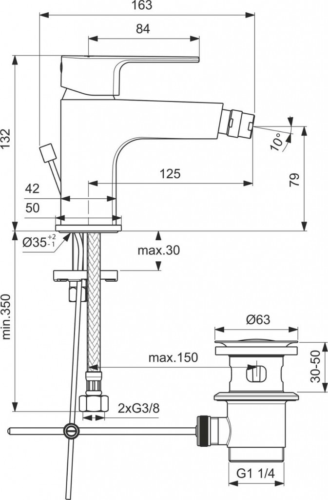 Páková bidetová baterie s výpustí