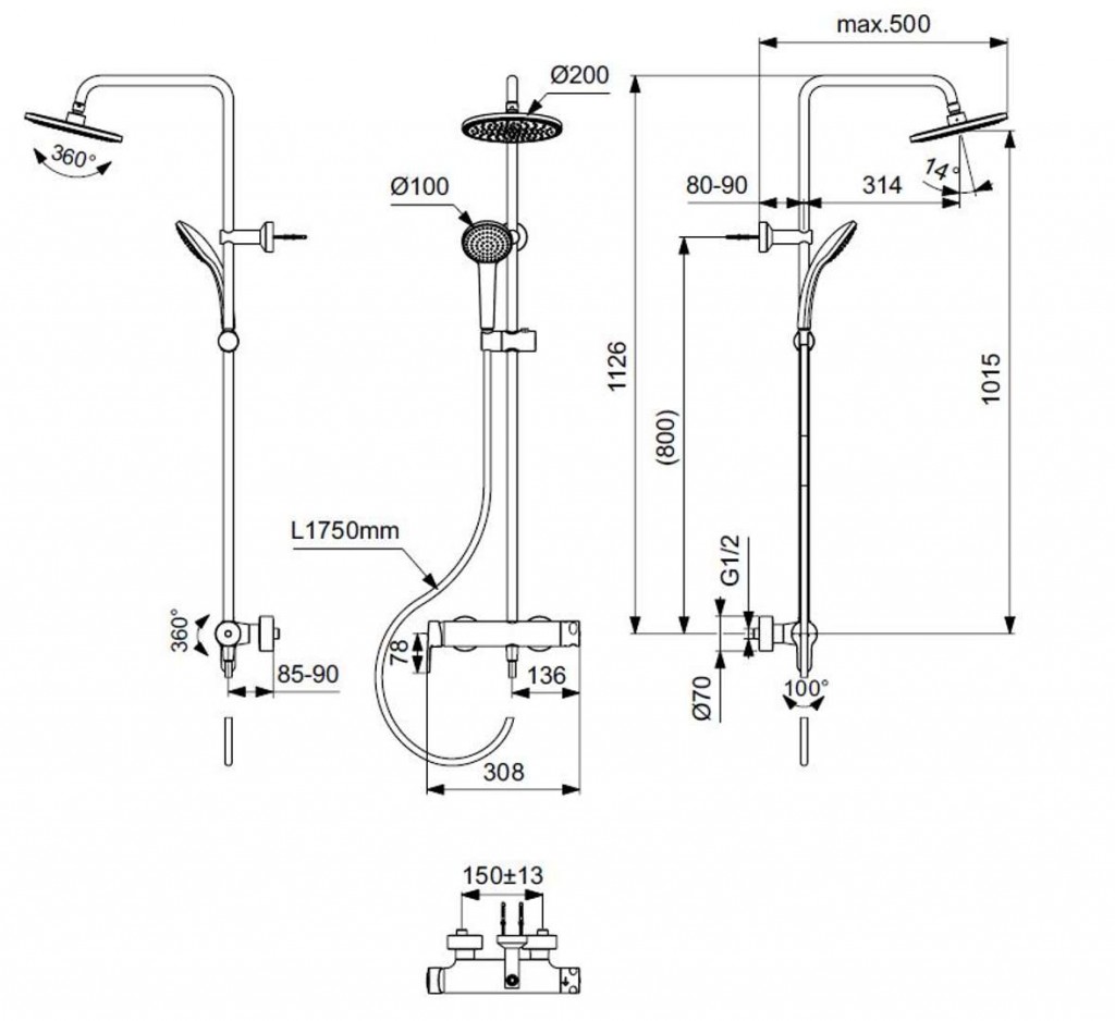 - rozteč 150 mm