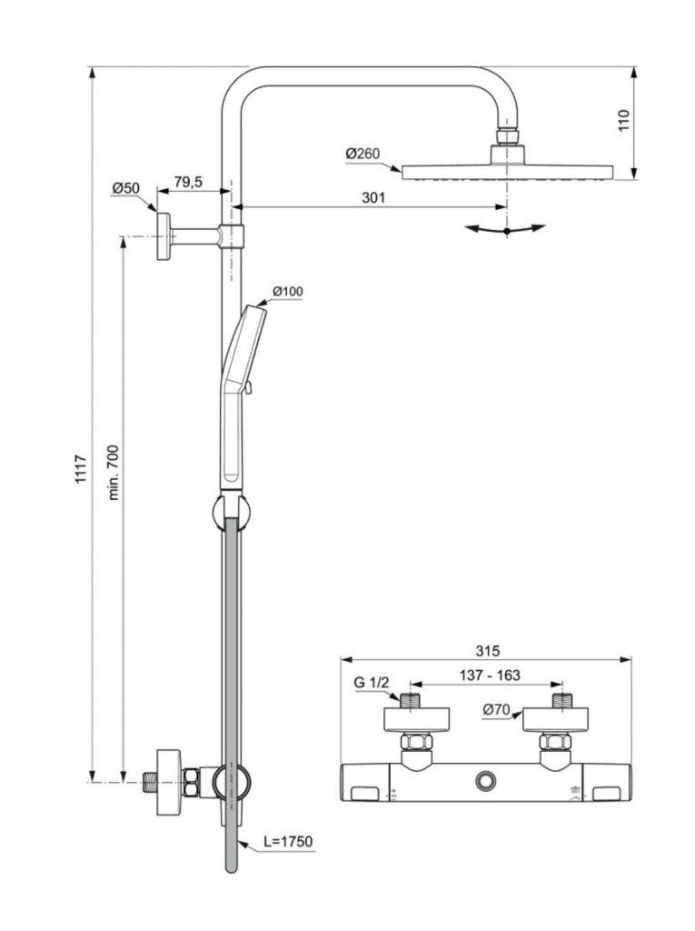 - 2‑cestný keramický přepínač mezi ruční a hlavovou sprchou