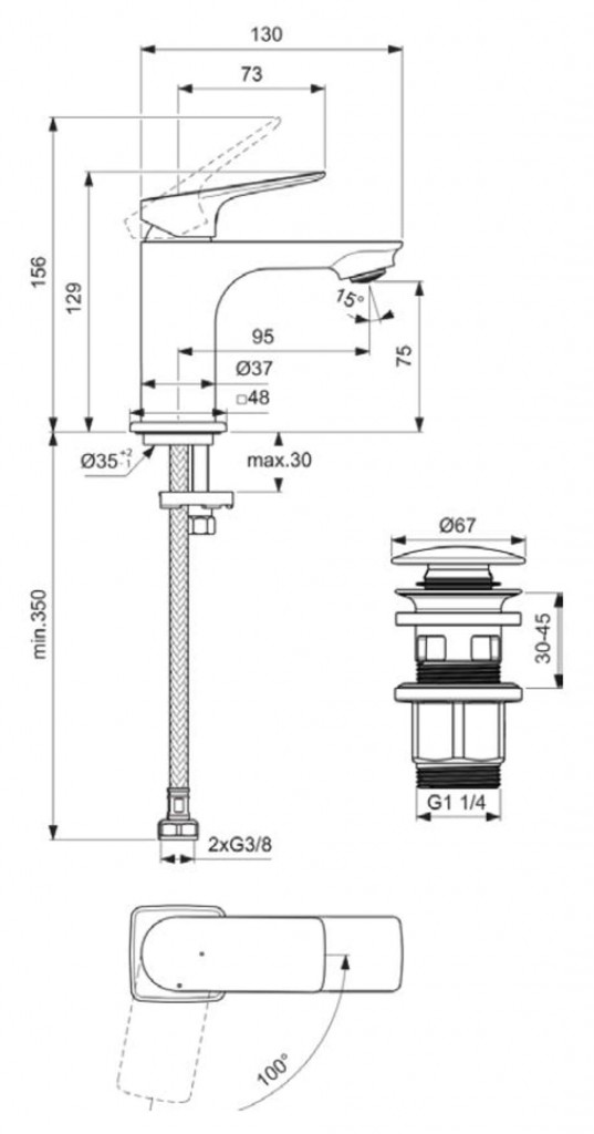 - délka výtoku: 95 mm