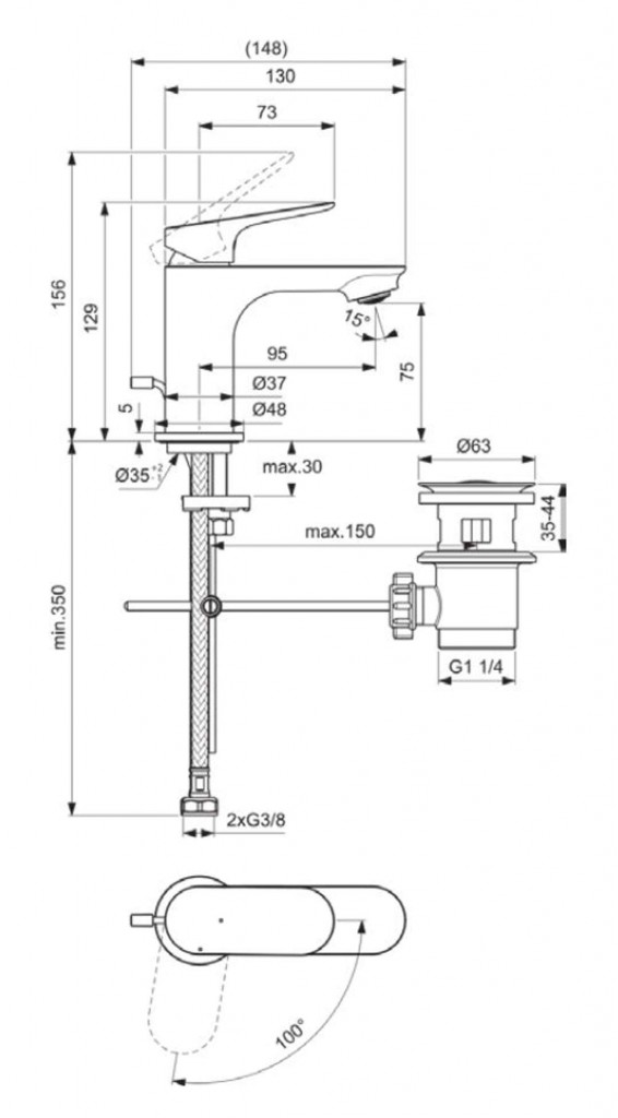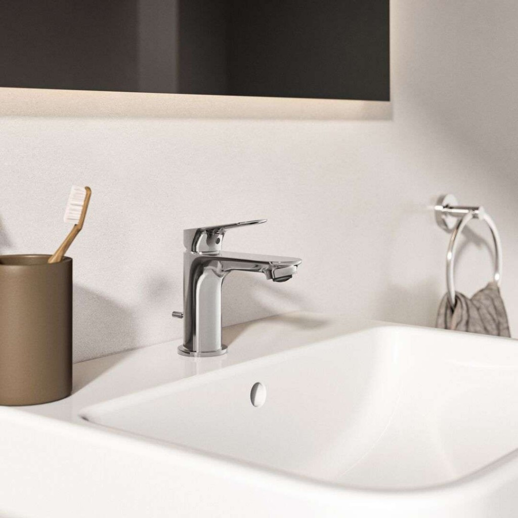 - BlueStart - ovládací páka je ve středové poloze a teče pouze studená voda, otáčením doleva přidáváme teplou vodu