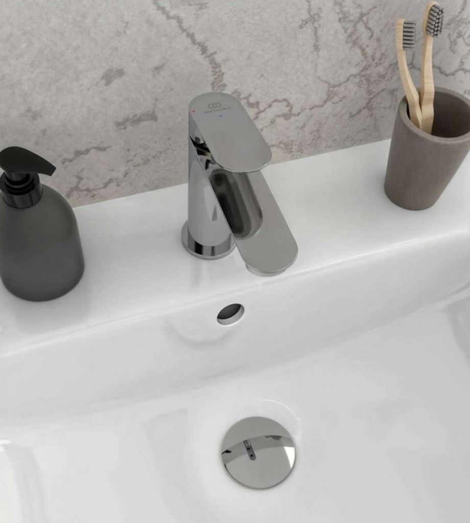 - BlueStart - ovládací páka je ve středové poloze a teče pouze studená voda, otáčením doleva přidáváme teplou vodu